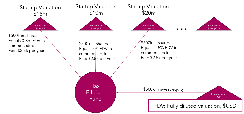Once a startup exits, the proceeds of the initial $500k share contribution are distributed to all 20 members of the fund.